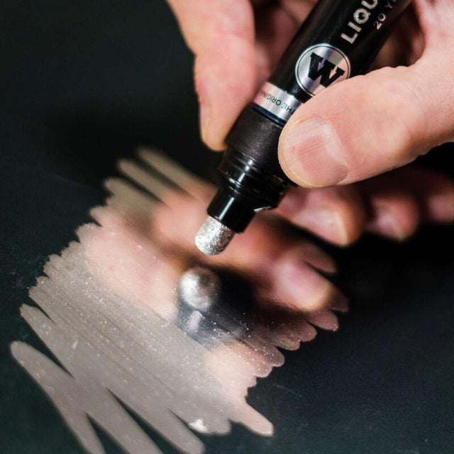 Molotow Liquid Chrome Markers are an alcohol based marker pens that contains a highly pigmented special ink. You can create high-gloss mirrored effects with these unique, alcohol-based markers from Molotow! Liquid Chrome Markers are great for creating a mirror finish on smooth, non-absorbent surfaces such as glass or plastic. The paint is highly opaque and permanent with good UV-resistance, and the low-odour formula makes the markers pleasant to use both inside and out. Molotow's patented Flowmaster technology assures consistent paint flow.Made in Germany.