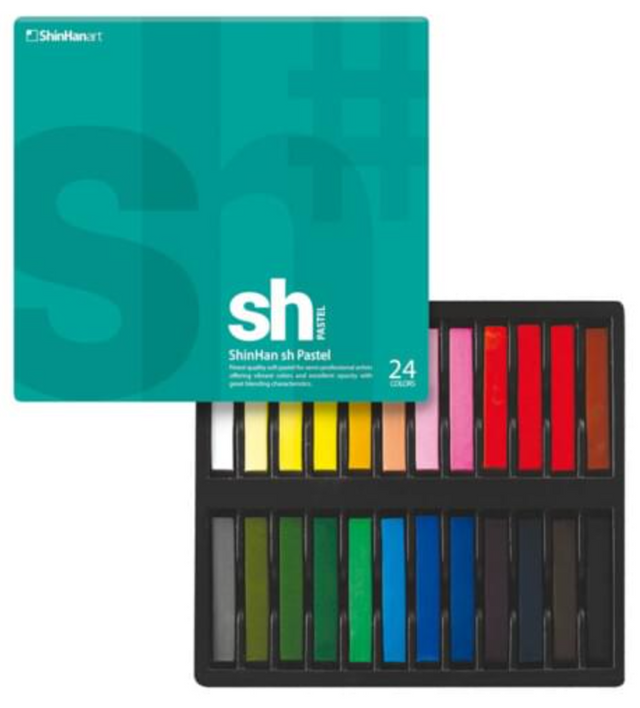 Expand your palette with ShinHan’s 24‑piece soft pastel set—rich hues for blending, shading, and luminous creativity.