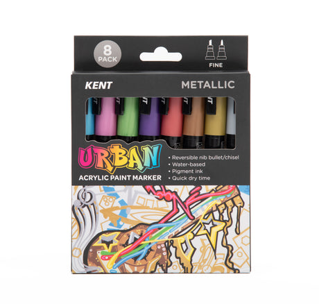 $14.95Unit price /UnavailableKent Urban Acrylic Paint Markers – Medium Nib 6mm Metallic Pack 8